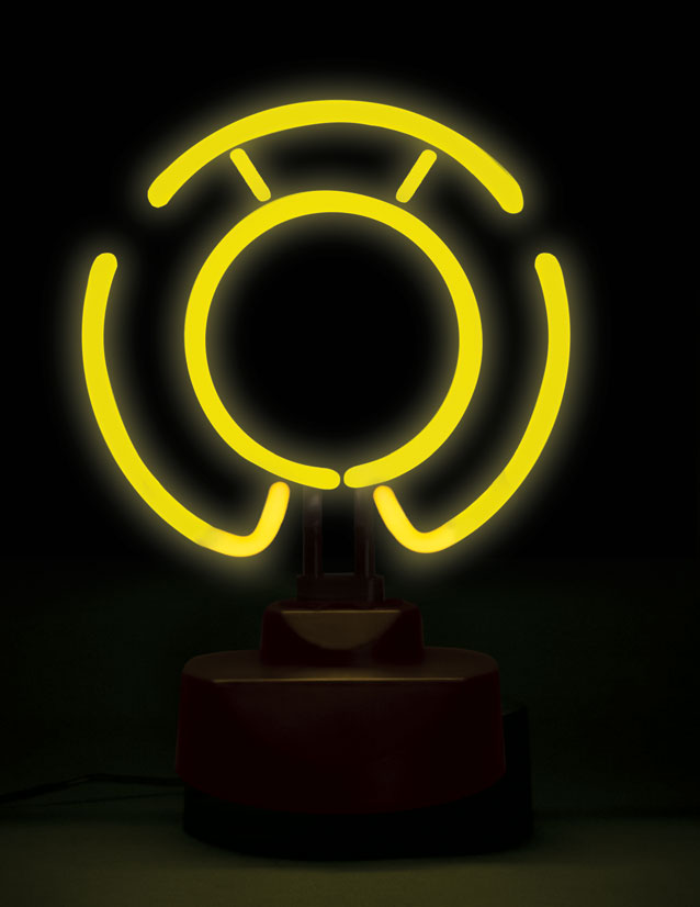 Bring the excitement of BLACKEST NIGHT into your home or store with this affordable mini neon sign featuring the Sinestro Corps' yellow lantern logo! The adjustable base unit can sit on a tabletop or be mounted to a wall. Powered by a plug-in, UL-adapter, the sign itself measures approximately 7 wide x 9 high and has a base measuring approximately 5.5 in diameter. ... |