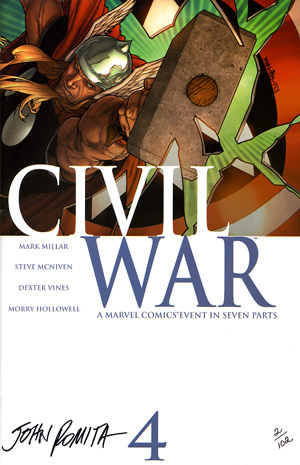 2 COPIES OF CIVIL WAR #4 - SIGNED BY JOHN ROMITA We know you love John Romita as much as we do, so today we're bringing you Civil War #4 signed by Jazzy John himself for the unbelievable price of only $6.95! Can you believe we're offering Jazzy John's sig's at ONLY $6.95? Well, seeing is believing, and fans who jump on this weekend (till we sell out), you're guaranteed ...