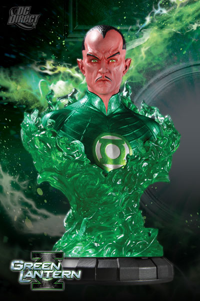 GREEN LANTERN (MOVIE): 1:4 SCALE SINESTRO DELUXE BUST This 1:4 scale bust of Sinestro emerging from a swirl of emerald energy is hand-painted, cold-cast in porcelain, measures approximately 7.75 high x 5 wide x 3.5 deep and is packaged in a 4-color box. Limited Edition of 3500 pieces. *Quantities may be allocated