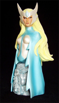Making her first appearance in Uncanny X-Men #120, the Alpha Flight member known as Snowbird was a mystical hybrid of human and ancient god-like beings. Now, Jim Maddox sculpts this stunning depiction of the shape-shifting being. Standing 6.5 tall, the Snowbird Mini-Bust is painted and ready to display. Scheduled to ship in August 2006. |