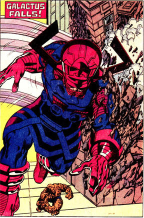 As the covers says, “Everyone versus Galactus! Need we say more?” The devourer of planets is back, and the Fantastic Four join forces with the Avengers, Spider-Man, Doctor Strange and other heroes of the Marvel Universe to knock him down… and that’s literally what they do. But it’s not just Galactus making trouble this issue (that would be too easy); Terrax is thrown in the mix! And the herald of Galactus has not only deceived his master but also decided to levitate Manhattan into space!!!