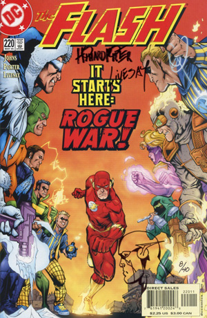 | THE FLASH #220 - SIGNED BY HOWARD PORTER AND RE-MARKED WITH A FLASH HEAD SKETCH BY JOHN LIVESAY!