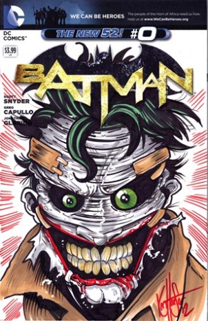 BATMAN #0 WE CAN BE HEROES BLANK VARIANT RE-MARKED WITH A DEATH OF THE FAMILY JOKER SKETCH IN FULL COLOR BY KEN HAESER!