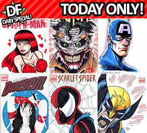 It's Sunday!!! The last day of the weekend!!! The first day of the new week and we're feeling lucky today!!! Today's special features a lucky chance for you receive an ORIGINAL, HAND-DRAWN work of art IN FULL, GLORIOUS COLOR on a blank variant edition Marvel or DC comic book! We have a great collection, some of which have never before been offered by DF, and for this special we will randomly select one just for you! For one day only, we are offering you the chance to add a one-of-a-kind work of art to your comic book collection. Not a hoax! Not a dream! Not a reproduction! Over the years, DF has offered incredible works of art from talented creators such John Watson, Lee Moder, Laura Guzzo, Billy Tan, Colton Worley, Ken Haeser, Randy Emberlin, Jae Lee, Marat Mychaels and legendary creators such as John Romita Sr and Joe Rubinstein. The selection will be from titles such as Amazing Spider-Man, Batman, X-Men, Wonder Woman, Deadpool, Harley Quinn, Avengers, Green Lantern, or another awesome blank variant edition from Marvel or DC COMICS drawn by some of our best and most DYNAMIC artists!!! These works of art are ready for framing to amaze your friends and only SEVEN of these randomly selected original masterpieces are available for today's DF Daily Special, and we are offering them at the DF Daily Special price of just $52.25!!! With a combined minimum regular MSRP of $175 or much higher, this is a deal you don't want to pass up!