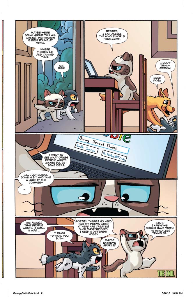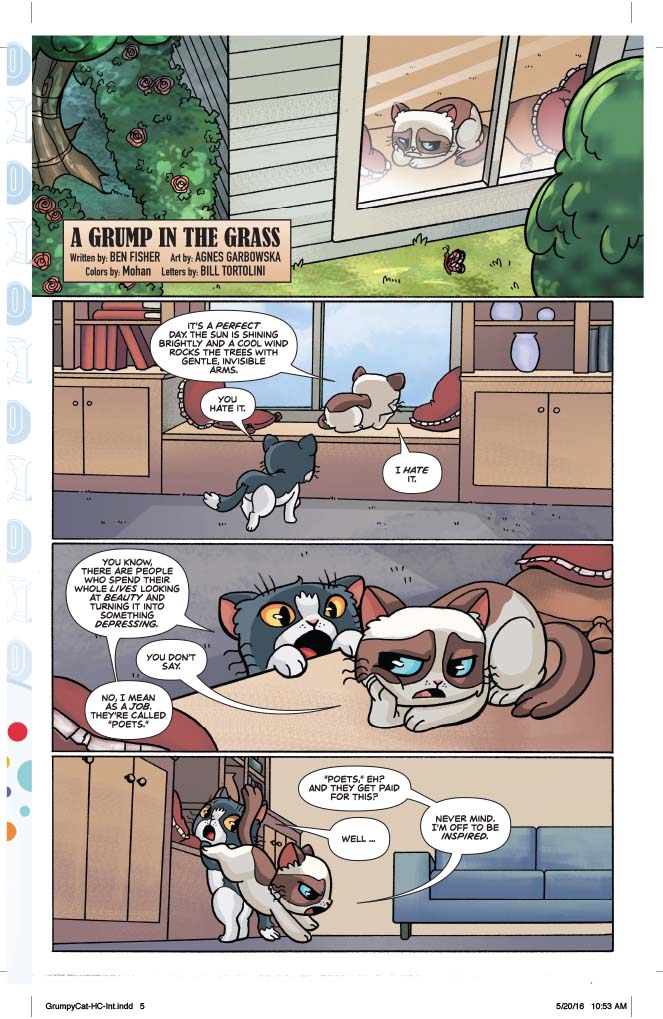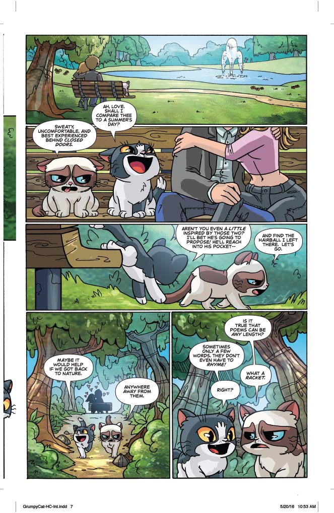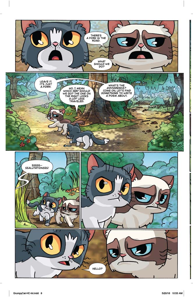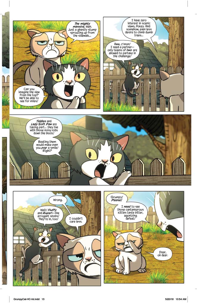 Rating: All Ages Cover: Steve Uy Writer: Ben McCool, Elliott Serrano, Ben Fisher, Royal McGraw Art: Agnes Garbowska, Steve Uy, Ken Haeser, Michelle Nguyen Publication Date: July 2016 Format: Hardcover Page Count: 104 pages ON SALE DATE: 7/14 Grumpy Cat, the internet's cutest curmudgeon, takes the world by storm with her comic book misadventures! You'll laugh yourself silly at the killjoy kitten's hilarious brand of sass, most often directed at her fun-loving, big-hearted brother Pokey. They're two cats that are too adorable for words, one with a childlike wonder, and the other with a pout so prominent, you can't help but to exclaim, "Awwwwww...!" What fun-loving escapades will Pokey dream up, and how will that adorable scamp Grumpy Cat rain on everyone's parade? As a special bonus, enjoy a Grumpy Cat pull-out poster! * "Friendly and easy to use for younger readers... A good book for parents and kids to read together." - Comicosity * "This new kitten on the block is refreshing, and with quality content as good as this, she will hopefully be around for some time." - The Big Glasgow Comic Page * "Well worth a read for fans of witty and sarcastic humor." - Capeless Crusader 978-1-5241-0004-9 |