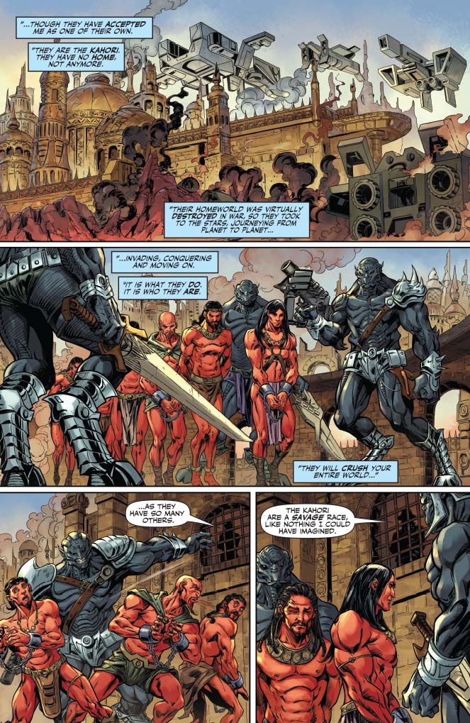 Rating: Mature Cover: J. Scott Campbell Writer: Ron Marz Art: Abhishek Malsuni Publication Date: October 2015 Format: Softcover Page Count: 160 pages ON SALE DATE: October 7 John Carter, the Confederate soldier transported to distant Mars, must save his adopted world from an adversary who is every bit his equal on the Red Planet: Captain Joshua Clark, formerly of the Army of the Potomac and now the strategist for a species of star-hopping conquerors. While Carter and his staunch ally, the Thark chieftain Tars Tarkas, lead a legion of united Green Men and Red Men against the alien assailants, Dejah Thoris - the princess of Barsoom - is held captive by the bloodthirsty Clark in the fallen city of Helium. The "Invaders of Mars" storyline is cosmic-scale action and adventure, courtesy of Ron Marz, the groundbreaking writer of Green Lantern! "Fans... of the broader works of Burroughs will be pleased." - Geek Sushi "It offers both long-term and new fans... a great place for jumping into the action. An excellent tribute to the fantasy and science fiction masterpieces that were the originals." - Graphic Policy "Ron Marz is a great Storyteller, Malsuni's art is a perfect complement to that storytelling... A must-read." - Comic Bastards 978-1-60690-756-6 |
