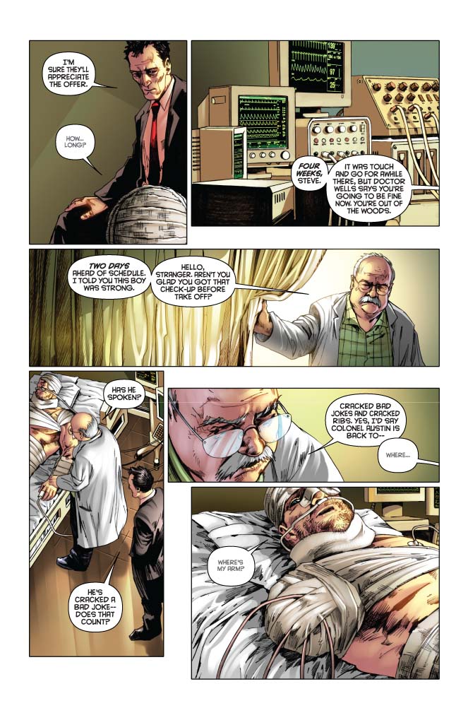 Rating: Teen + Covers: Alex Ross (main), Jonathan Lau (1-in-10) Writer: Kevin Smith with Phil Hester Artist: Jonathan Lau Colorist: Ivan Nunes Genre: Media Tie-In, Action Adventure Awards: N/A Publication Date: Oct 2011 Format: Comic Book Page Count: 32 pages Rights: WW Age range: 16+ UPC: 725130179753 Colonel Steve Austin's body is ruined, his spirit broken, the prospect of a future as a barely human cyborg haunting him as he hovers between life and death. Meanwhile, the demented cyborg Hull launches the first strike in his fanatical war against humanity! From the team that brought you Kevin Smith's Green Hornet. |