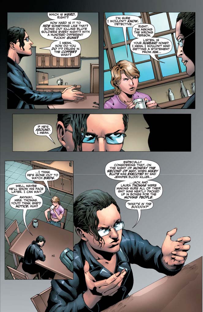 Rating: Mature Covers: Tim Bradstreet Writer: Al Ewing Artist: Eman Casallos Awards: N/A Publication Date: Aug 2012 Format: Comic Book Page Count: 32 pages Rights: WW Age range: 16+ UPC: 725130184108 01811 UPC: 725130184108 01821 All Jen Fellows wants to do is bury Jennifer Blood once and for all - and she's not the only one. Our third arc ramps up to a shocking climax as Detective Pruitt makes her move, Jen makes another difficult decision and several wrongs don't make a right. You won't believe where we go from here... |