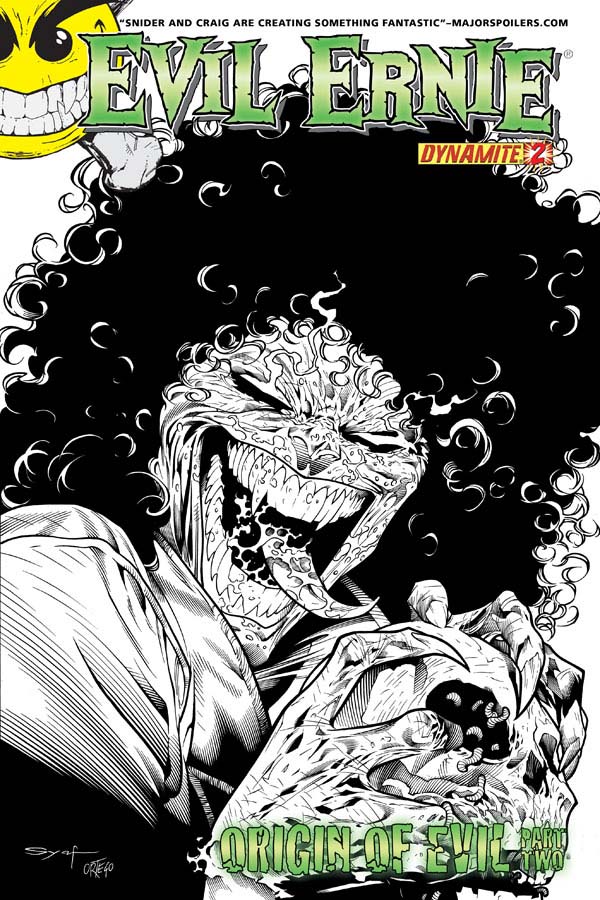 Rating: Teen+ Covers: Ardian Syaf (25%), Dan Brereton (25%), Kyle Hotz (25%), Stephen Segovia (25%) Writer: Jesse Blaze Snider Artist: Jason Craig Genre: Horror Awards: N/A Publication Date: Nov 2012 Format: Comic Book Page Count: 32 pages Rights: WW UPC: 725130197214 00211 UPC: 725130197214 00221 UPC: 725130197214 00231 UPC: 725130197214 00241 ORIGIN OF EVIL PART 2! "Evil Ernie" is BACK FROM THE DEAD (SPOILER) & out to kill his would-be 666th victim, his wicked foster father, Buford! But will Ernie be able to keep up his bargain with Satan and murder Buford before his new powers run out?! He will if "Smiley" has anything to say about it! Jesse Blaze Snider (Hulk: LET THE BATTLE BEGIN) and JASON CRAIG (FREDDY VS. JASON VS. ASH) reinvent the squeal with Dynamite's darkly funny relaunch of EVIL ERNIE! |