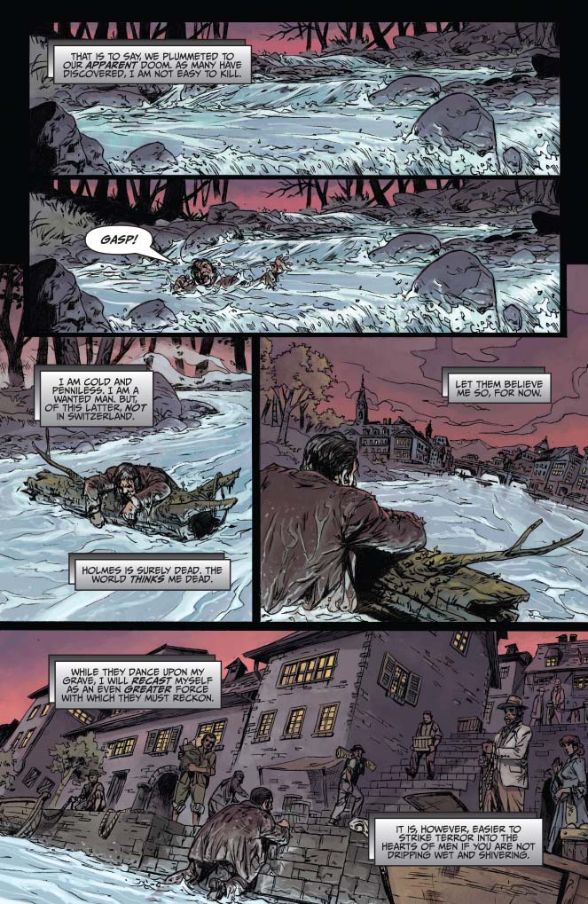 Rating: Teen + Covers: Francesco Francavilla Writer: David Liss Art: Daniel Indro Genre: Action/Adventure, Detective Publication Date: Dec 2013 Format: Comic Book Page Count: 32 pages UPC: 725130211064 00111 ON SALE DATE: December 11 UPC: 725130211064 00121 Professor James Moriarty has faced his arch rival, Sherlock Holmes, above Reichenbach Falls, where they have both plummeted to their doom. Or have they? Washed ashore in a strange town in Switzerland, Moriarty is alone, penniless, and without his network of thieves. Will his cunning and guile be enough against a foe more ruthless than Holmes himself? It's one of the greatest villains of all time as you've never seen him! |