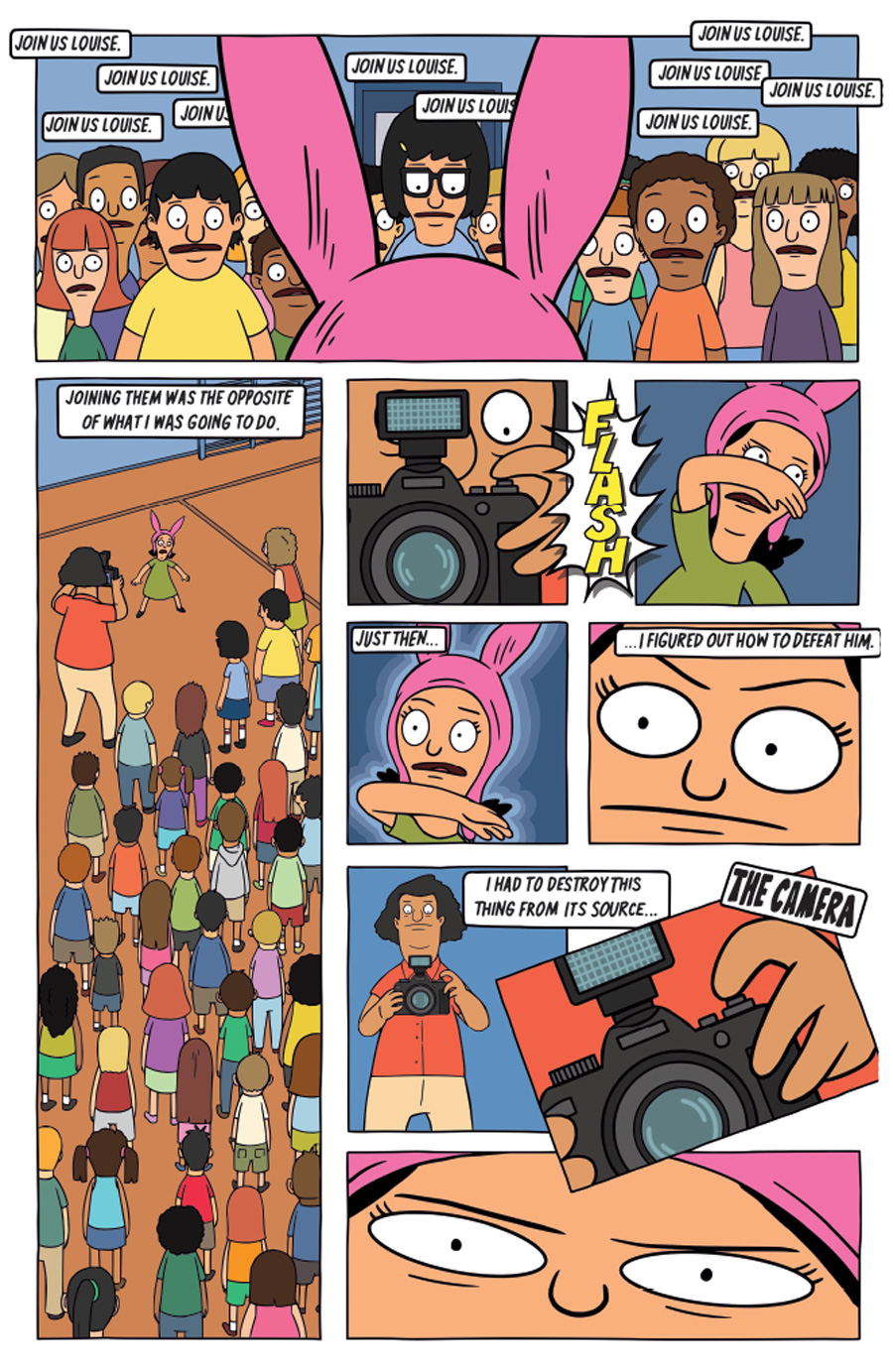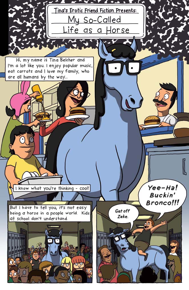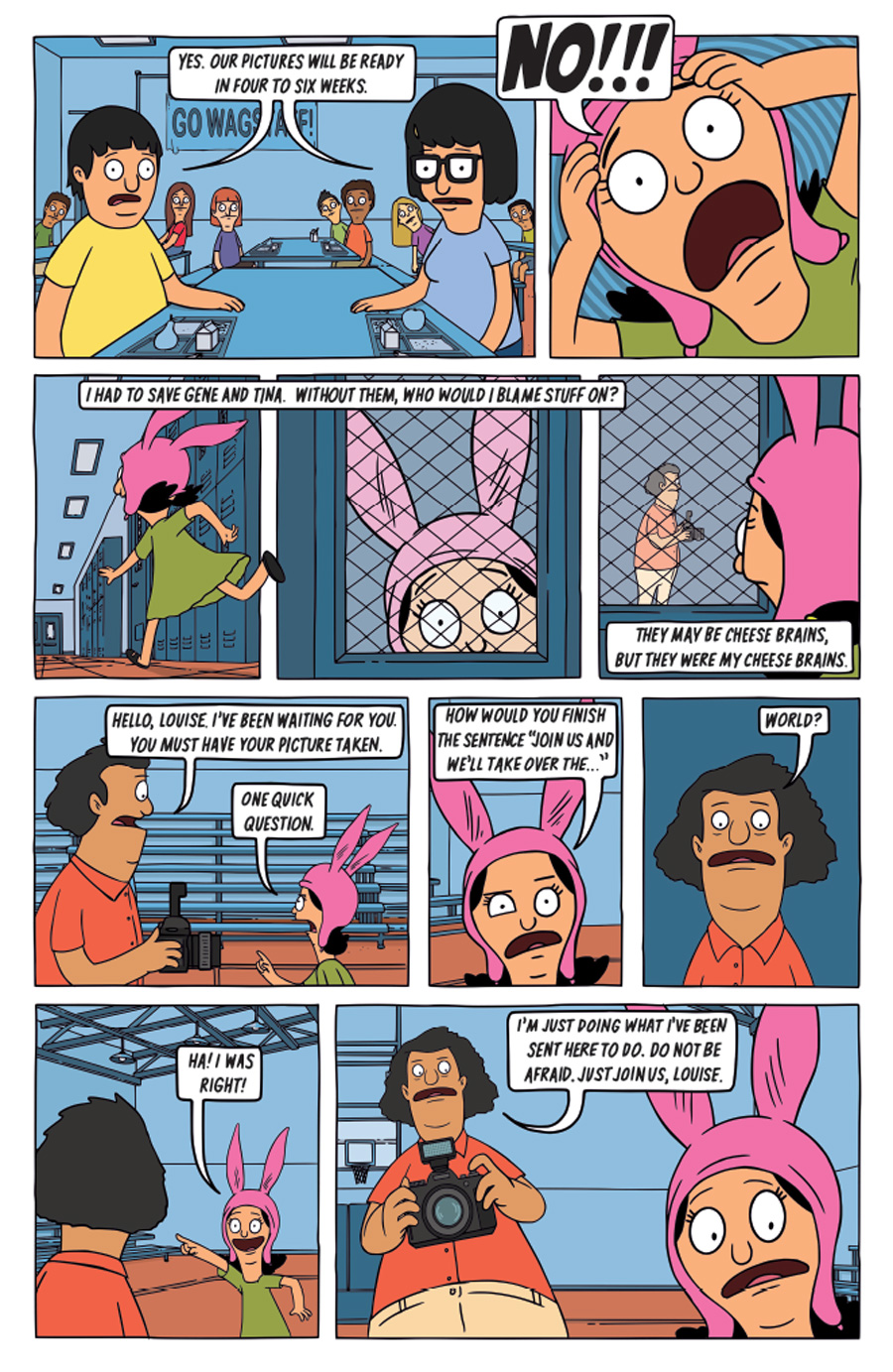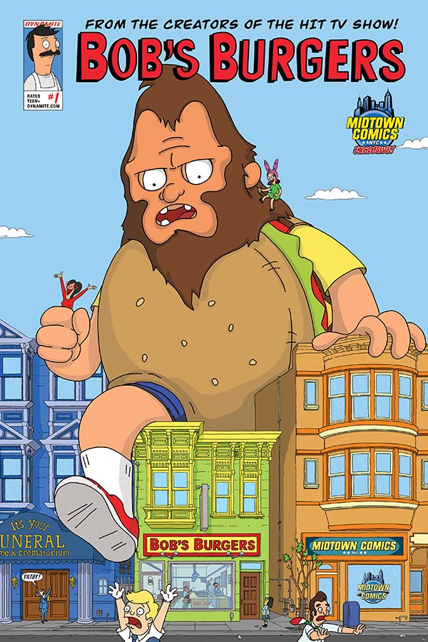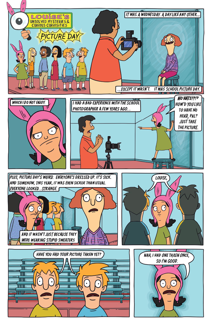 Rating: Teen + Covers: Devin Roth Writer: Rachel Hastings, Mike Olsen, Justin Hook, Jeff Drake Art: Frank Forte, Brad Rader, Bernard Derriman, Tony Gennaro Genre: Media Tie-In Publication Date: Aug 2014 Format: Comic Book Page Count: 32 pages UPC: 725130216861 01011 ON SALE DATE: August 27 All right! The very first Bob's Burgers comic book, a new series from the creator of the hit TV show, created by Loren Bouchard! Now you can read about the Belcher family (parents Bob and Linda, and their children Tina, Gene and Louise) in brand-new in-canon stories created by the TV show's producers, writers and animators creating all original stories appearing exclusively in this comics series. Each comic includes hilarious installments of: "Louise's Unsolved Mysteries," "Tina's Erotic Friend Fiction," "A Gene Belcher Original Musical," "Letters Written by Linda" and "Bob's Burgers of the Day." Bob's Burgers is an American animated sitcom that airs on Fox television with other hits such as The Simpsons and Family Guy! |