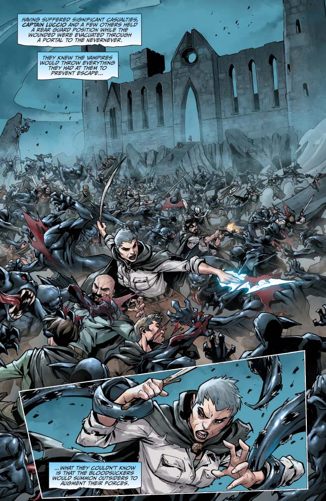 Rating: Teen + Covers: Stjepan Sejic Writer: Jim Butcher, Mark Powers Art: Carlos Gomez Genre: Fantasy, Detective Publication Date: Jun 2014 Format: Comic Book Page Count: 40 pages UPC: 725130216885 01011 ON SALE DATE: June 4 Four months have passed since the events depicted in Dead Beat, Jim Butcher's New York Times- bestselling 7th novel in the Dresden Files series. A war is raging between the vampire forces of the Red Court and the White Council-a war the wizards are losing. So desperate are the Council that they've draGoon'>Gooned the experienced and the outcast to reinforce their thinning ranks of Wardens. One of these draftees is one Harry Dresden, Chicago's only wizard for hire and a guy who's long been looked upon with suspicion by the supernatural authorities. Now, he's one of them, and his first big mission as a Warden is a doozy: take a small team of greenhorns to a frigid town in the middle of nowhere to rescue a handful of mortals who've been targeted by the Red Court. The question is, why exactly are these particular mortals so crucial to the outcome of the war? The answer will come only if Harry can keep them, and his team, alive for one very long night. An all new, original Dresden Files story featuring stunning artwork from Carlos Gomez, and covers by the amazing Stjepan Sejic! |