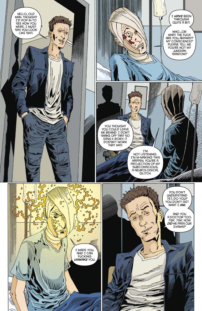 Rating: Mature Covers: Jae Lee Writer: Peter Milligan Art: Piotr Kowalski Genre: Superhero Publication Date: Oct 2014 Format: Comic Book Page Count: 32 pages UPC: 725130219244 03011 ON SALE DATE: October 1 Now in the United States, the nightmares keep coming for one-time terminal case Rory Fletcher. In desperation, he leaves Rory Fletcher behind and assumes a new identity, which comes with a ready-made beautiful wife and cute kids. All seems well until visitors from his past life - and a horrific reminder of his cancer - threaten to destroy this newfound happiness. Meanwhile back in England, nervous Minesh and beautiful damaged Mia get dangerously mixed up with the strange Treatment Q. |