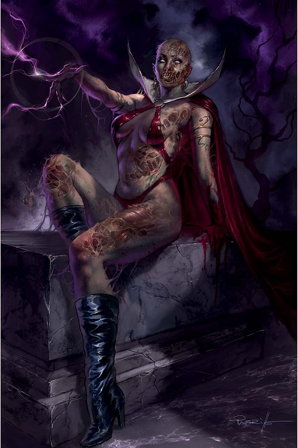SPOTLIGHT Rating: Teen+ Cover A: Lucio Parrillo UPC: 725130307224 02011 Cover B: Arthur Suydam UPC: 725130307224 02021 Cover C: Joseph Michael Linsner UPC: 725130307224 02031 Cover D: Dave Acosta UPC: 725130307224 02041 Cover E: Gracie Cosplay Lass UPC: 725130307224 02051 Writer: Fred Van Lente Artist: Vincenzo Carratu Genre: Superhero, Horror Publication Date: July 2021 Format: Comic Book Page Count: 32 On Sale Date: 7/14/2021 The hit series returns, cuz you can't kill a never-ending army of Zombies...you can only hope to beat the $% out of them! After tragically losing their first Chosen One against the zombie plague, Vampirella, Miss Fury, and what remains of the Project SUPERPOWERS look for a new savior -- but Ash Williams is an even more reluctant Deadite hunter than usual! This time, the Army of Darkness has ray guns, super powers and a brilliant new general: Evil Sonja, who takes her role of Queen of Hel quite seriously! |