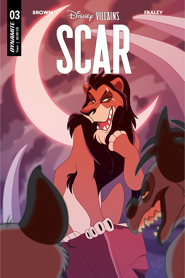 Rating: Teen Cover A: Karen Darboe UPC: 72513032952303011 Cover B: Trish Forstner UPC: 72513032952303021 Cover C: Erica Henderson UPC: 72513032952303031 Cover D: Drew Moss UPC: 72513032952303041 Cover E: Gene Ha UPC: 72513032952303051 Writer: Chuck Brown Artist: Trevor Fraley Genre: Adventure Publication Date: June, 2023 Format: Comic Book Page Count: 32 On Sale Date: 6/14/2023 The cunning vultures have enticed Scar onto a dangerous path to power. He knows they're lying...but they are a means to an end, and so Scar's plan begins to take shape: He will travel to the Elephant Graveyard for an encounter with the Hyena Queen! |