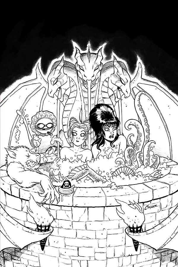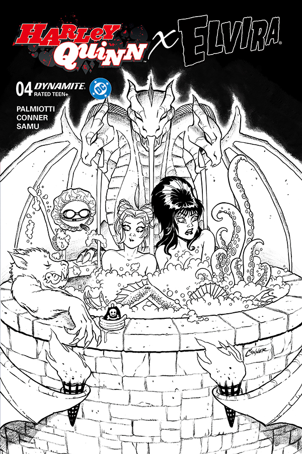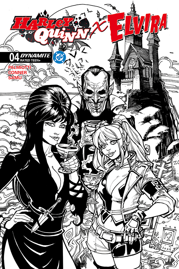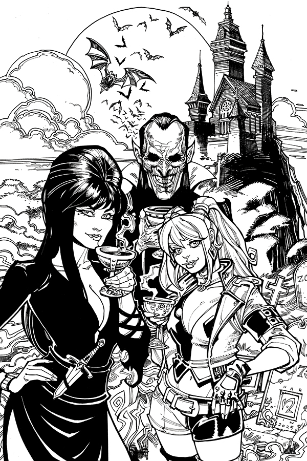 Rating: Teen+ Cover A: Amanda Conner Hot Tub UPC: 72513035710604011 Cover B: Chad Hardin UPC: 72513035710604021 Cover C: Joseph Michael Linsner UPC: 72513035710604031 Cover D: Ben Caldwell UPC: 72513035710604041 Writers: Amanda Conner, Jimmy Palmiotti Artists: Juan Samu, Amanda Conner Genre: Superhero/Horror/Humor Publication Date: January 2026 Format: Comic Book Page Count: 32 On Sale Date: 1/7/26 OUT OF THE FRYING PAN AND INTO THE FIRE! With things getting too hot to handle back in Brooklyn, Elvira and Harley abscond to the cooler climes of Transylvania to crash with one of Elvira's best buddies in his tastefully appointed castle. But despite their reputation as old-school hedonists, the Count's already-invited guests don't much care for this pair of interlopers - and they've got some decidedly medieval ideas for how to deal with party crashers! Harley fan club co-founders AMANDA CONNER and JIMMY PALMIOTTI go continental in Harley Quinn X Elvira #4, with Conner once again serving up double helpings of steaming-hot covers (as well as adding flavor to JUAN SAMU's tasty interior art) along with Joseph Michael Linsner, CHAD HARDIN, BEN CALDWELL, and a special MYSTERY BLIND BAG featuring exclusive variants! Please Note: The number of Blind Bags is limited, and allocations may occur. |