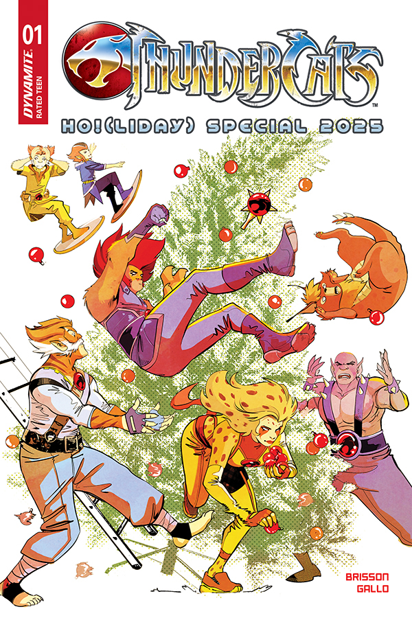 Rating: Teen Cover A: Sebastian Piriz UPC: 72513036197401011 Cover B: Fabio Gallo UPC: 72513036197401021 Cover C: Robert Quinn UPC: 72513036197401031 Writer: Ed Brisson Artist: Fabio Gallo Genre: Science Fiction/Adventure Publication Date: December, 2025 Format: Comic Book Page Count: 40 On Sale Date: 12/17/25 A NIGHT TO REMEMBER! While on a mission in the snowy mountains of Third Earth, the Thundercats stumble across Snowman, the last of his people, on the eve of the Festival of the Claw - a day of celebration, food, and gifts, and a time for Snowman to pay tribute to those he's lost. With no others of his kind remaining to pass his traditions on to, Snowman shares them with the 'Cats, who understand all too well the need to persevere in the face of overwhelming loss. Meanwhile, just outside of Snowman's mountaintop village, Queen Tartara's royal guard are preparing to use the holiday as a perfect opportunity for a surprise attack. But even on this hallowed occasion, not every Thunderan has let down their guard! Acclaimed Thundercats: Lost author ED BRISSON and renowned artist FABIO GALLO get the party started in this special 40-page one-shot - with seasonal covers catered by GALLO, SEBASTIAN PIRIZ, and ROBERT QUINN, as well as an exclusive BLIND BAG VARIANT! EACH MYSTERY BLIND BAG INCLUDES TWO SEPARATE COPIES OF THE ISSUE, BOTH OF WHICH ARE EXCLUSIVE TO THE BLIND BAG - ONE BLANK AUTHENTIX EDITION, AND ONE OF FIVE UNIQUE VARIANT COVER ART EDITIONS. |
