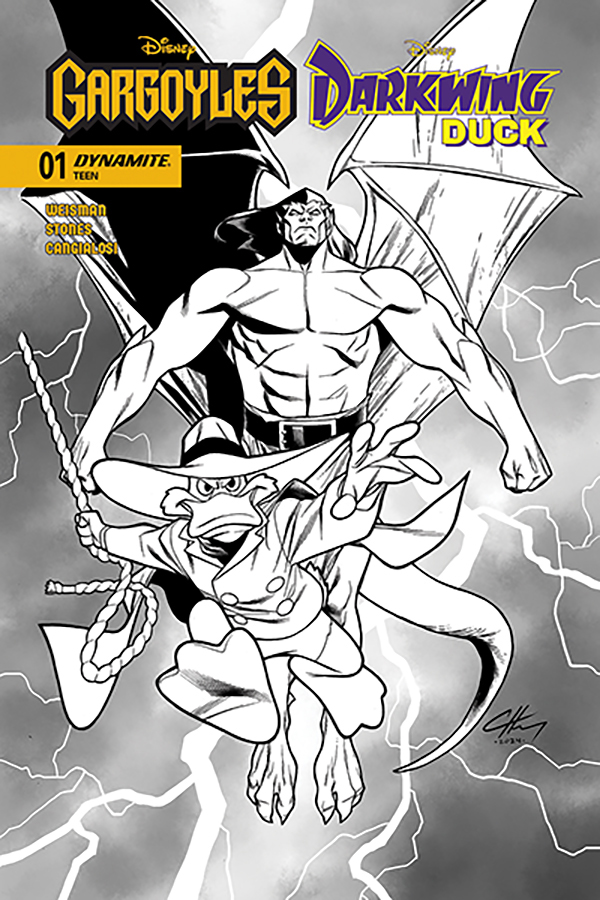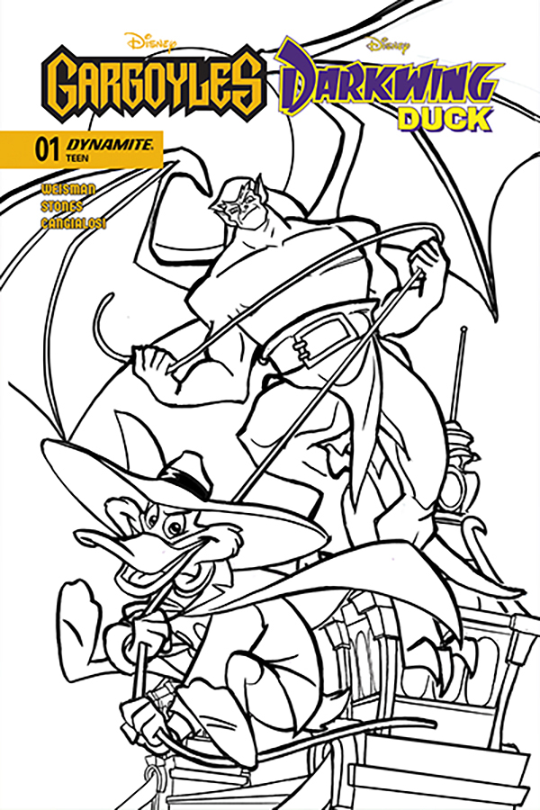 Rating: Teen Cover A: Tad Stones UPC: 72513036250601011 Cover B: Ivan Bigarella UPC: 72513036250601021 Cover C: Declan Shalvey UPC: 72513036250601031 Cover D: Ciro Cangialosi UPC: 72513036250601041 Cover E: BLANK AUTHENTIX UPC: 72513036250601051 Writers: Greg Weisman, Tad Stones Artist: Ciro Cangialosi Genre: Fantasy/Adventure Publication Date: January 2026 Format: Comic Book Page Count: 32 On Sale Date: 1/14/26 JUSTICE KNOWS NO BOUNDARIES! Worlds collide as two of the most beloved entries in the legendary Disney Afternoon lineup of animated shows meet for the first time ever in a brand-new title crafted by both series' original authors! Gargoyles creator GREG WEISMAN and Darkwing Duck creator TAD STONES join forces with acclaimed artist CIRO CANGIALOSI to bring the Defenders of St. Canard and the Manhattan Clan together for an adventure so epic that no single continuity could contain it! After contacting a wary Morgana Macawber through her magic mirror, the scheming Demona whisks the uncooperative sorceress out of St. Canard and into her New York City lair, where she proceeds to grill Morgana for the location of a certain mystical tome with enough eldritch energy to allow Demona to finally conquer the world. Darkwing Duck, of course, isn't about to take this lying down. As soon as he learns about Morgana's abduction, DW and his stalwart sidekick Launchpad McQuack are in the air, racing towards the Big Apple to rescue his avian amour. But will the Terror That Flaps in the Night be able to handle the City That Never Sleeps - not to mention the stone guardians who protect it? Find out in the action-packed first issue of GARGOYLES/DARKWING DUCK, featuring tantalizingly transformative covers by STONES, CANGIALOSI, DECLAN SHALVEY, and IVAN BIGARELLA - as well as an exclusive BLIND BAG VARIANT! Please Note: The number of Blind Bags is limited, and allocations may occur. |