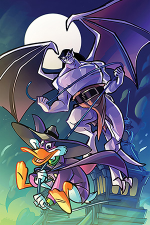 Rating: Teen Cover G: Tad Stones Metal Premium Cover UPC: 72513036250601071 Writers: Greg Weisman, Tad Stones Artist: Ciro Cangialosi Genre: Fantasy/Adventure Publication Date: January 2026 Format: Comic Book Page Count: 32 On Sale Date: 1/28/26 JUSTICE KNOWS NO BOUNDARIES! Worlds collide as two of the most beloved entries in the legendary Disney Afternoon lineup of animated shows meet for the first time ever in a brand-new title crafted by both series' original authors! Gargoyles creator GREG WEISMAN and Darkwing Duck creator TAD STONES join forces with acclaimed artist CIRO CANGIALOSI to bring the Defenders of St. Canard and the Manhattan Clan together for an adventure so epic that no single continuity could contain it! After contacting a wary Morgana Macawber through her magic mirror, the scheming Demona whisks the uncooperative sorceress out of St. Canard and into her New York City lair, where she proceeds to grill Morgana for the location of a certain mystical tome with enough eldritch energy to allow Demona to finally conquer the world. Darkwing Duck, of course, isn't about to take this lying down. As soon as he learns about Morgana's abduction, DW and his stalwart sidekick Launchpad McQuack are in the air, racing towards the Big Apple to rescue his avian amour. But will the Terror That Flaps in the Night be able to handle the City That Never Sleeps - not to mention the stone guardians who protect it? Find out in the action-packed first issue of GARGOYLES/DARKWING DUCK, featuring tantalizingly transformative covers by STONES, CANGIALOSI, DECLAN SHALVEY, and IVAN BIGARELLA - as well as an exclusive BLIND BAG VARIANT! Please Note: The number of Blind Bags is limited, and allocations may occur. |