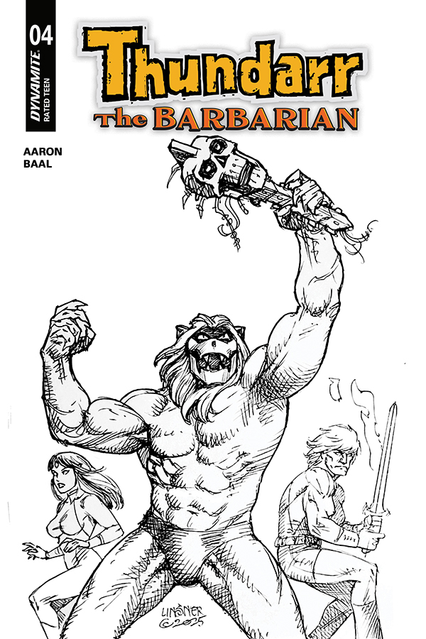 Rating: Teen Cover A: Michael Cho UPC: 72513036251304011 Cover B: Francesco Mattina UPC: 72513036251304021 Cover C: Bjorn Barends UPC: 72513036251304031 Cover D: Joseph Michael Linsner UPC: 72513036251304041 Writer: Jason Aaron Artist: Kewber Baal Genre: Science Fiction/Adventure Publication Date: April, 2026 Format: Comic Book Page Count: 32 On Sale Date: 4/29/26 SECRETS OF THE SUNSWORD REVEALED! It's one of Thundarr's greatest assets in his fight against the world's would-be oppressors - but where did the Sunsword originally come? How was it forged? And how did the history of this remarkable weapon become so inextricably linked to the fates of Thundarr, Ookla, and Princess Ariel? The answers to these questions and more await in the pages of Thundarr the Barbarian #4 - all painstakingly researched and rendered by future historians JASON AARON and KEWBER BAAL, and supported by corroborating covers from MICHAEL CHO, FRANCESCO MATTINA, BJORN BARENDS, and Joseph Michael Linsner! |