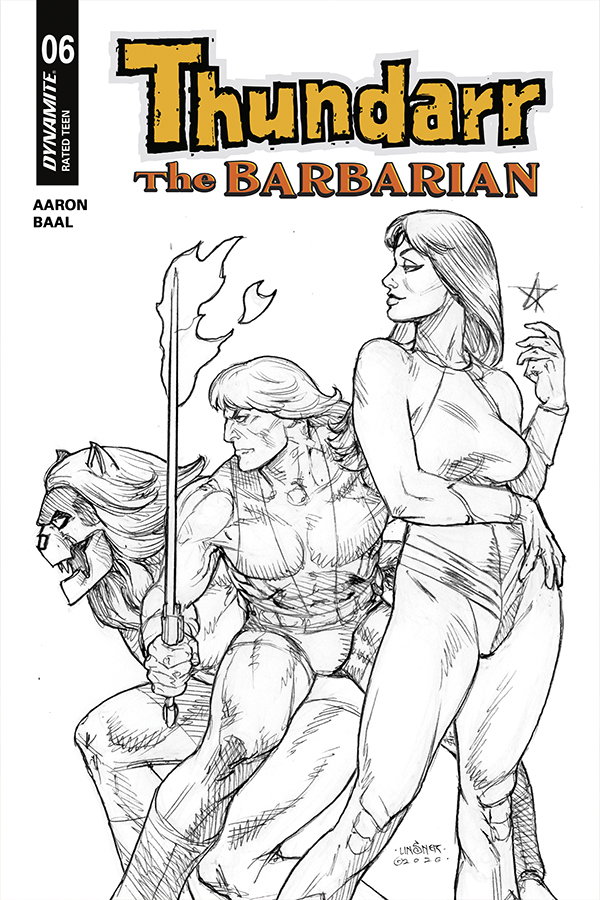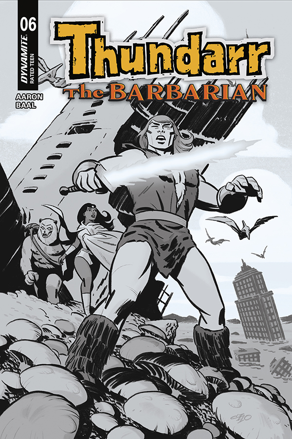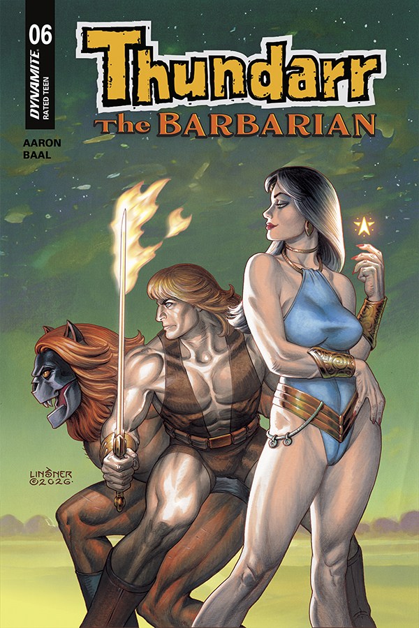 Rating: Teen Cover A: Michael Cho UPC: 72513036251306011 Cover B: Francesco Mattina UPC: 72513036251306021 Cover C: Bjorn Barends UPC: 72513036251306031 Cover D: Joseph Michael Linsner UPC: 72513036251306041 Genre: Science Fiction/Adventure Writer: Jason Aaron Artist: Kewber Baal Publication Date: June, 2026 Format: Comic Book Page Count: 32 On Sale Date: 6/17/2026 Our opening story arc featuring the return of the greatest 1980s animated barbarian ever reaches its epic finale! In their battle against the unprecedented power of the Council of Wizards, our heroes have bravely faced the timestream itself - and now they come upon their darkest reflections! It all concludes here - and the fate of the future itself hangs in the balance! Lords of Light protect us all! The future is now! The future is Thundarr! This issue is written by Jason Aaron and drawn by Kewber Baal (Vampirella: Armageddon, Elvira), with all-star covers by Michael Cho, Francesco Mattina, Bjorn Barends and Joseph Michael Linsner! |
