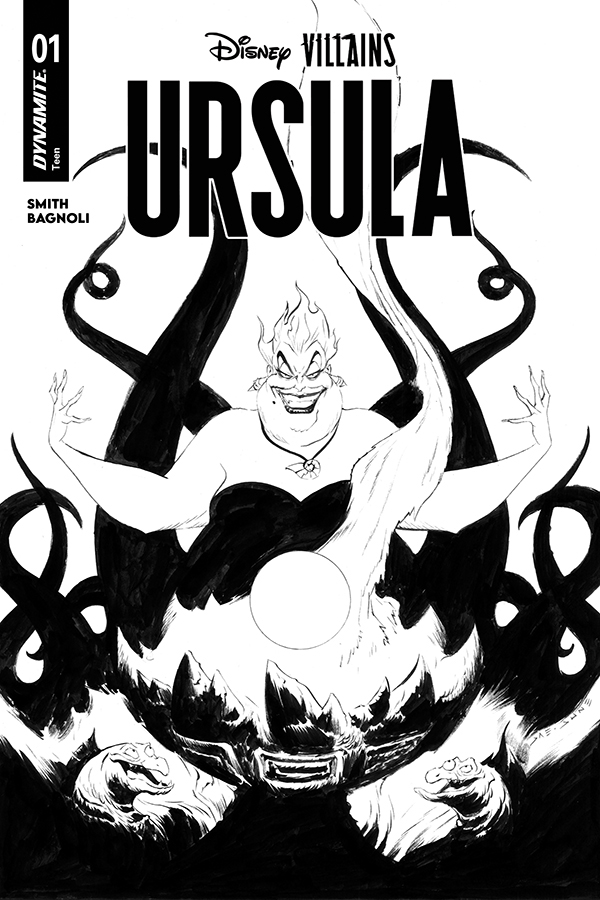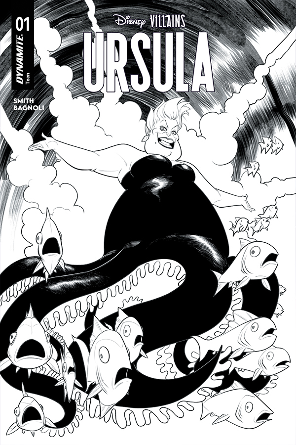 Rating: Teen Cover A: Mirka Andolfo UPC: 72513036284101011 Cover B: Jae Lee UPC: 72513036284101021 Cover C: Robert Quinn UPC: 72513036284101031 Cover D: Shatoki Shiki UPC: 72513036284101041 Cover E: Francesca Carita UPC: 72513036284101051 Cover F: BLANK AUTHENTIX UPC: 72513036284101061 Writer: Sherri L. Smith Artist: Gabriele Bagnoli Genre: Fantasy Publication Date: February, 2026 Format: Comic Book Page Count: 32 On Sale Date: 2/11/26 INTO THE BOTTOMLESS BLUE! Writer SHERRI L. SMITH and artist GABRIELE BAGNOLI take readers back beneath the waves for an all-new tale of tentacled treachery! Years before she would meet a young mermaid named Ariel, the formidable Ursula presided over a vast underwater kingdom as one of the Seven Sea Witches. Along with Capricia, Scylla, Charybdis, Melusine, Tiamat, and Vodyanoy, together the septet ruled the world's oceans with impunity. So when one of Ursula's royal sisters is suddenly found broken and stripped of all her powers, Ursula takes it as an attack upon their collective authority, and sets out to find and punish the culprit - knowing that, among all the denizens of the deep, only one would dare to challenge the Sea Witches' reign! Featuring a shimmering school of covers by MIRKA ANDOLFO, Jae Lee & JUNE CHUNG, ROBERT QUINN, ELLERY, and SHATOKI SHIKI, Disney Villains: Ursula #1 plumbs the hidden depths of one of Disney's most beloved baddies! |