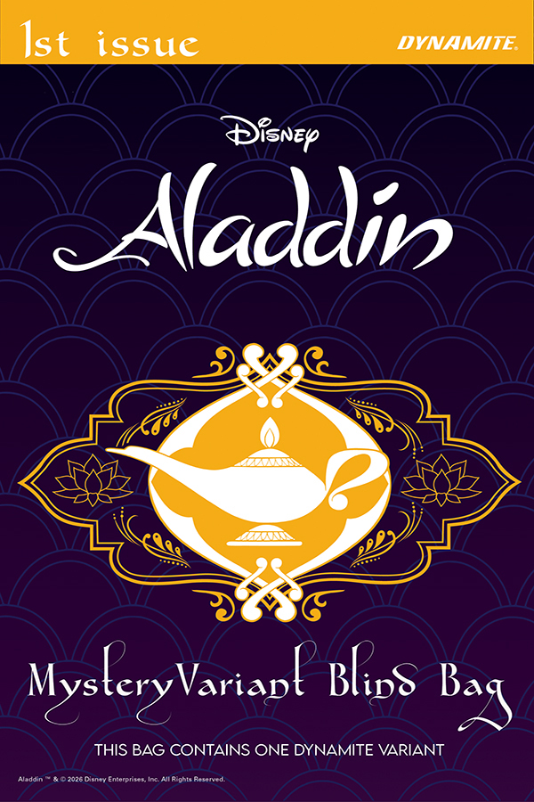 Rating: All Ages Cover A: Nicoletta Baldari UPC: 72513036400501011 Cover B: Natacha Bustos UPC: 72513036400501021 Cover C: J. Scott Campbell UPC: 72513036400501031 Cover D: Agnese Eterno/Cartoon Head UPC: 72513036400501041 Cover E: Blank Authentix UPC: 72513036400501051 Genre: Adventure Writer: James III Artist: Agnese Eterno Publication Date: May, 2026 Format: Comic Book Page Count: 32 On Sale Date: 5/6/2026 WELCOME TO AGRABAH! Your wish is our command in this all-new series starring everyone's favorite diamond in the rough, Aladdin! Life is good these days for the former street rat...he's with his love Jasmine, he's got his buddies Abu and Carpet, and Genie is free to do...whatever it is that Genie wants to do. But trouble always seems to pop up around Al, and he'll need the help of everyone he loves to save himself and the entire city of Agrabah! This debut issue features covers by Nicoletta Baldari, Natacha Bustos, J. Scott Campbell, a Cartoon Head cover by Agnese Eterno, and a special PREMIUM MYSTERY VARIANT BLIND BAG containing three limited editions of the issue selected randomly from a range of covers exclusive to this offering! Please note: The number of Blind Bags is limited, and allocations may occur. |